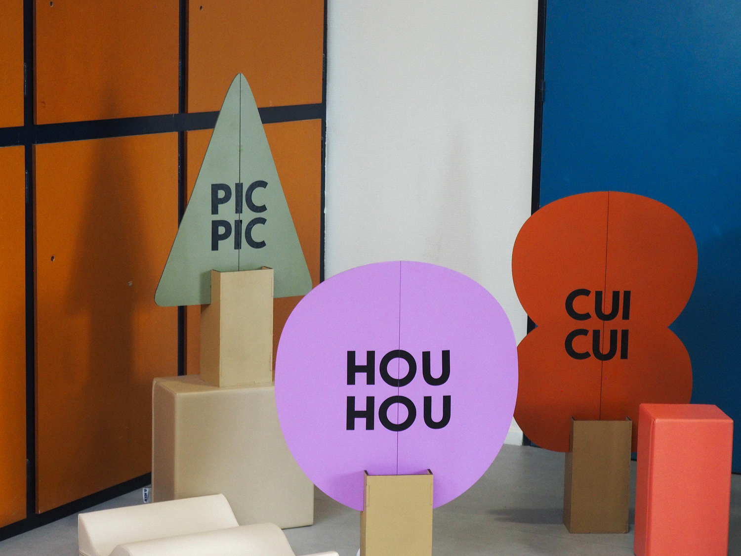 Avec l'installation "Ça Piaille !" l'univers graphique de mon livre "PETITS BECS" sort de la page pour devenir un espace concret. Elle se matérialise par une série d'objets et de jeux conçus comme des outils de médiation.